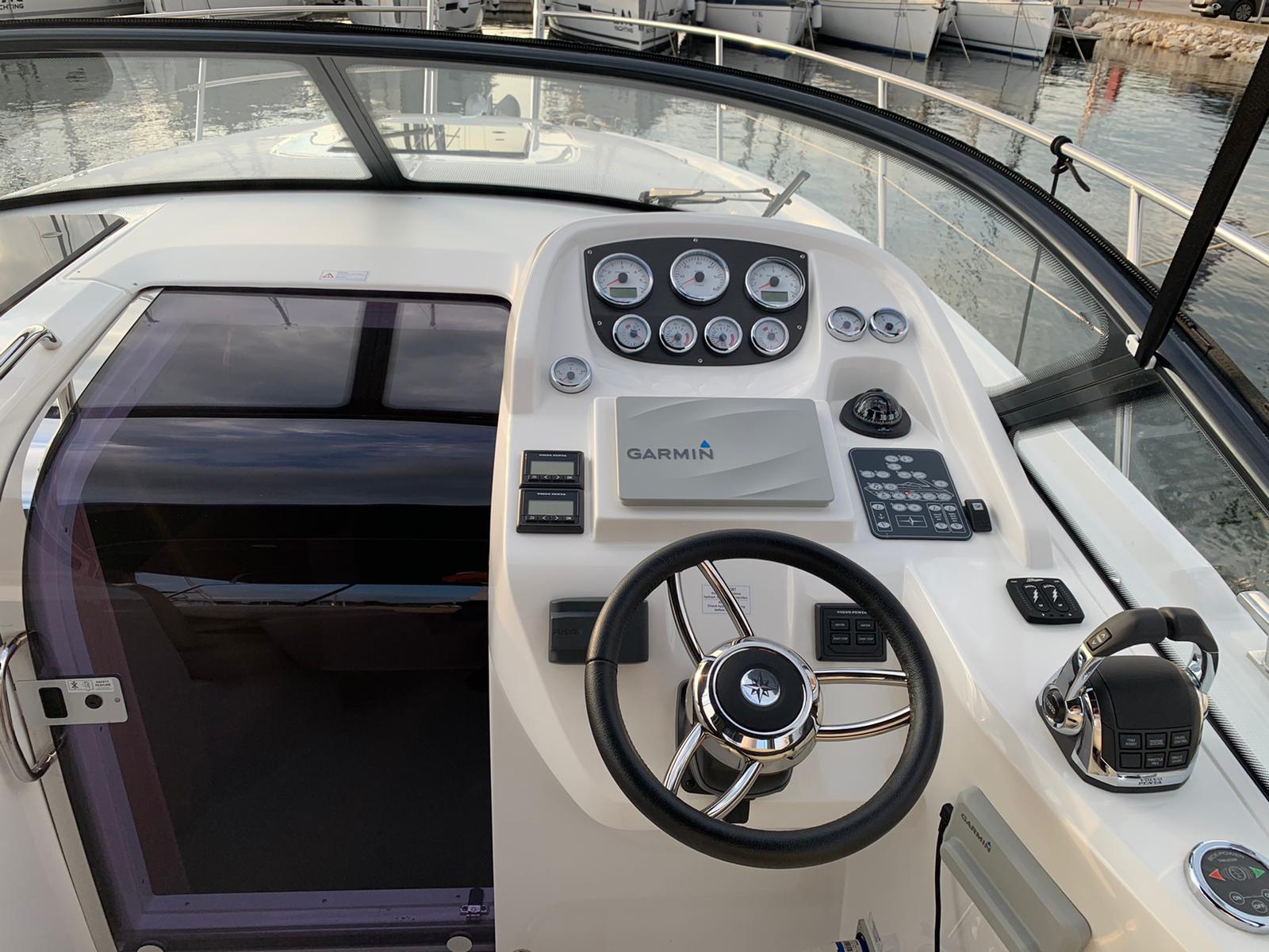 Schon am Design der BAVARIA S29 erkennt man: das ist eine Yacht mit viel Power und sportlichen Ambitionen. Ideal für Fahrer, die auf dem Wasser gern schneller unterwegs sind. Dabei hilft ihnen u. a. ein ergonomischer Steuerstand mit übersichtlichem Layout. Nur eines von vielen Highlights. Kurz: Einem relaxten Tag auf See mit Familie und Freunden steht mit der BAVARIA S29 nichts im Wege. Sportlicher Fahrspaß ist garantiert.