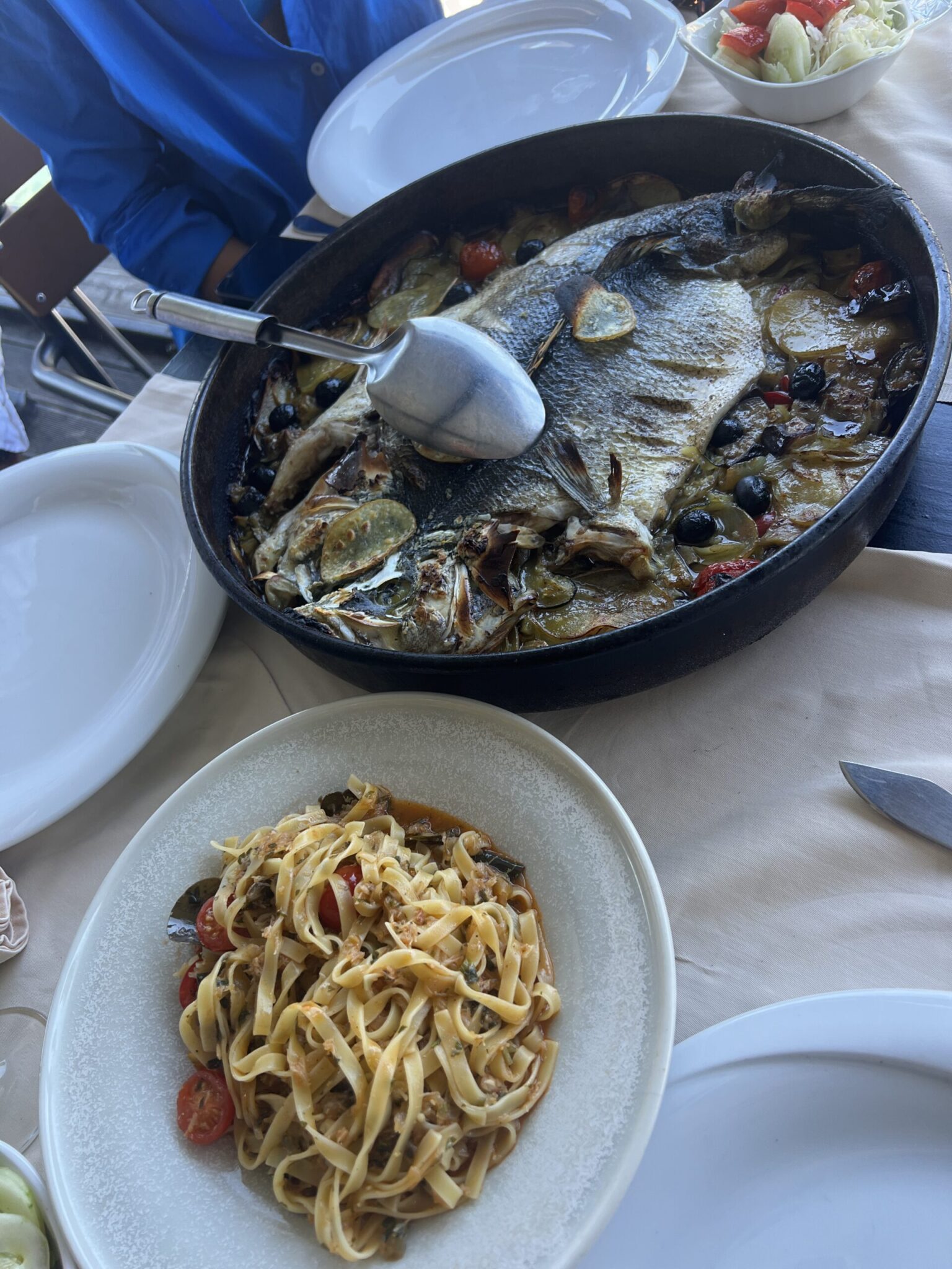 Uživali smo u predivnom ambijentu, a mogli smo birati između sidrenja na bovi ili uživanja u ukusnim jelima u restoranu. Naša preporuka je da iskusite njihovu riblju platu – bogatu raznovrsnim morskim delicijama koje su svježe ulovljene. Također smo kušali ribu ispod peke, koja je bila pripremljena s posebnom pažnjom i tradicionalnim okusima.