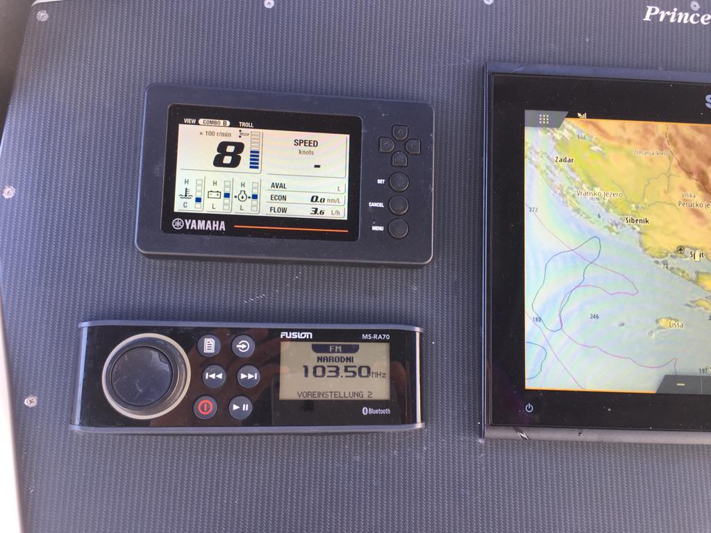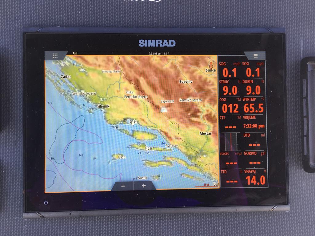 Savršeno opremljen tuš na brodu omogućit će vam osvježenje nakon istraživanja kornatskih otočja. Navigacijski sustav osigurava preciznost i sigurnost tijekom plovidbe među otočićima, dok radio doprinosi ugodnom ozračju i pruža informacije o okolnim atrakcijama.